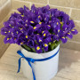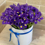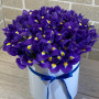 45 фиолетовых ирисов в шляпной коробке в Сургуте