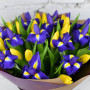 Букет из синих ирисов и желтых тюльпанов в Сургуте