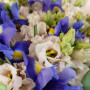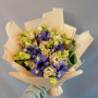 Букет из синих ирисов и кремовых эустом в Сургуте