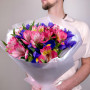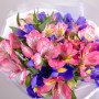 Букет из синих ирисов из розовых альстромерий в Сургуте